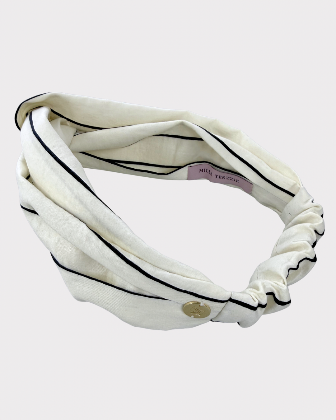 Ленена лента за коса с елегантен тюрбан силует и изразителен преден възел, който придава характер и завършеност на визията. Изработена от естествен лен с фина текстура, тя съчетава комфорт и изискано присъствие, подходящо както за дневни, така и за по-елегантни поводи.